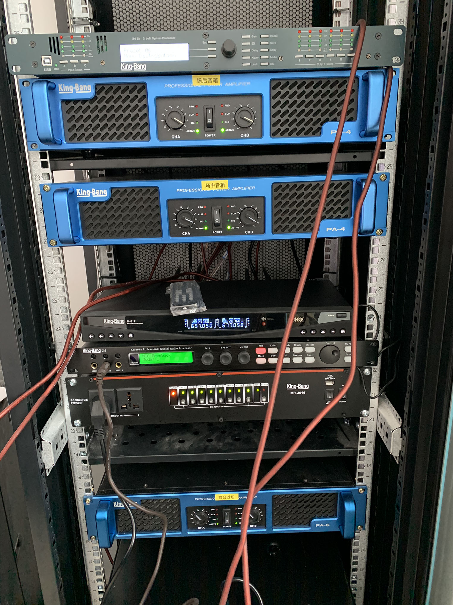 專業(yè)擴(kuò)聲系統(tǒng)中運(yùn)用了專業(yè)功放PA系列,以及周邊設(shè)備,宴會(huì)廳中的音響采用KB系列以吊掛形式均勻固定安裝在宴會(huì)廳內(nèi)的左右兩側(cè)墻體上作現(xiàn)場(chǎng)輔助補(bǔ)聲音箱。該款音箱定向?yàn)楸銛y式/固定安裝打造,音質(zhì)達(dá)到高保真級(jí),高抗壓性,可持續(xù)穩(wěn)定動(dòng)作。完全能滿足多功能會(huì)議廳,宴會(huì)廳等專業(yè)室內(nèi)擴(kuò)聲使用。