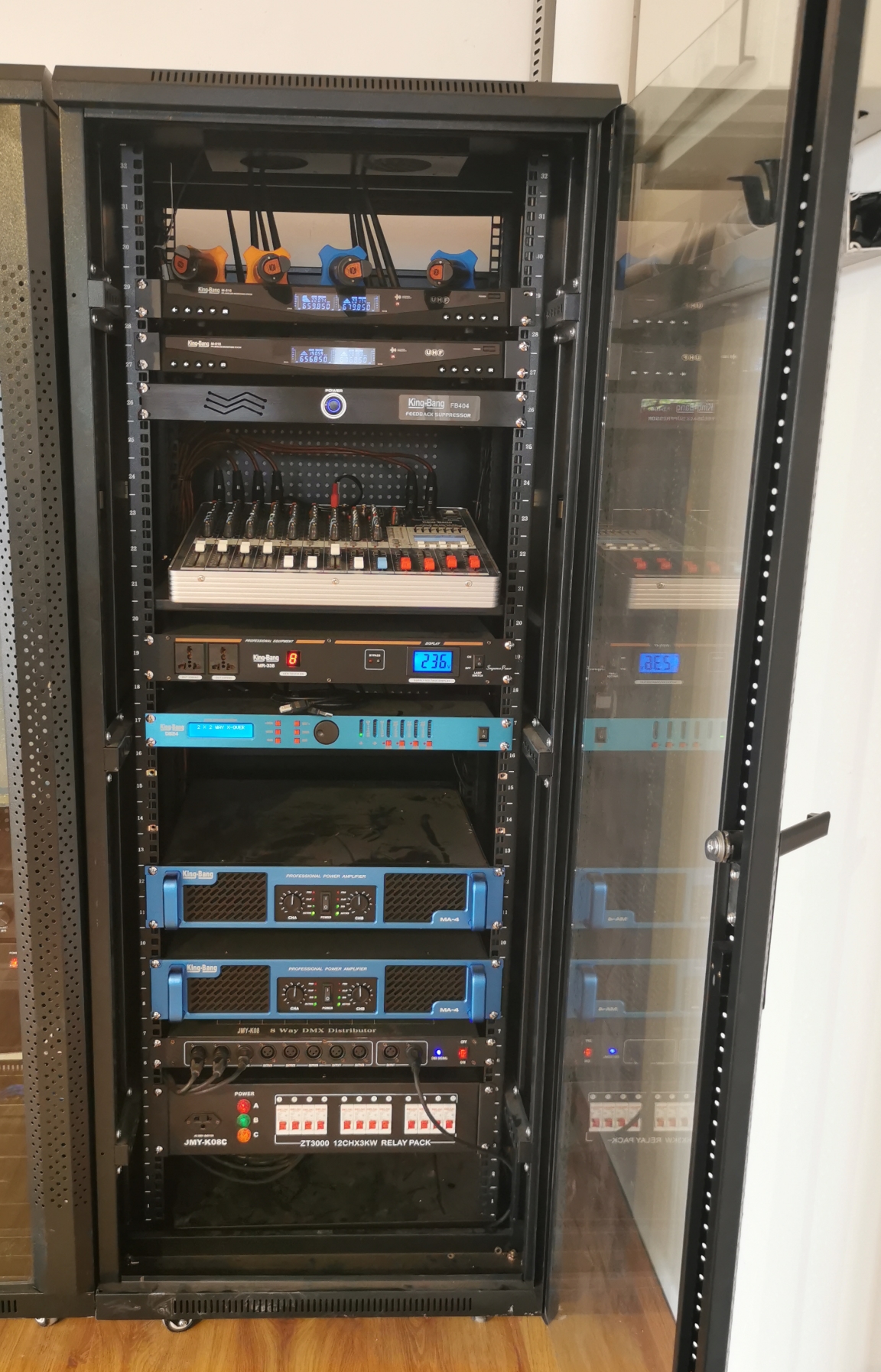 京邦電子(KING-BANG)京邦技術工程師通過對多媒體教室的布局環(huán)境分析,對音響設備進行合理的布置與連接,并安裝的音響設備,可以使聲源和音響系統(tǒng)末端——音箱同處于一個聲場區(qū)域內,使觀眾能感受到聲源的真實存在,達到高保真重放的擴聲要求。且達到多媒體教室音響以自然聲為主,要求擴散性良好,聲場分布均勻,響度合適,自然度好等要求。