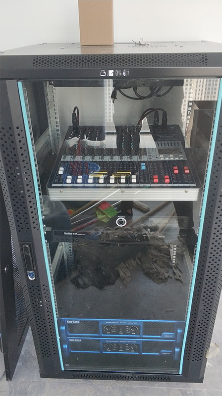 放大設(shè)備——指對經(jīng)過調(diào)控設(shè)備混音輸出、信號處理后的信號進行后級功率放大設(shè)備,這里指專業(yè)功率放大器;重放設(shè)備——指將經(jīng)過后級功率放大器放大的音頻信號進行電—聲轉(zhuǎn)換并釋放表現(xiàn)出來人耳可懂的聲頻信號的設(shè)備,這里指揚聲器;