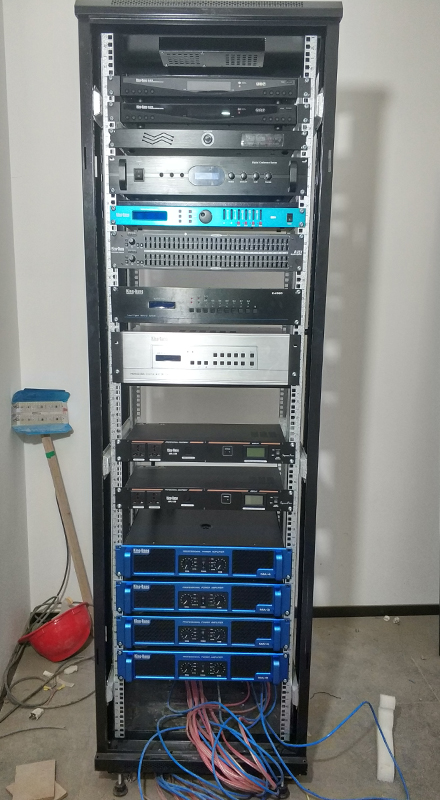 專業(yè)擴聲系統(tǒng)簡單來說就是把聲音信號放大,主要由聲源、音頻處理設(shè)備、功放及揚聲器系統(tǒng)組成。通過計算會議室的音響場地系數(shù)進行設(shè)計,保證會議室每個角落的聲場聽覺均勻,音響效果達到語言清晰、無失真、聲場分布均勻。